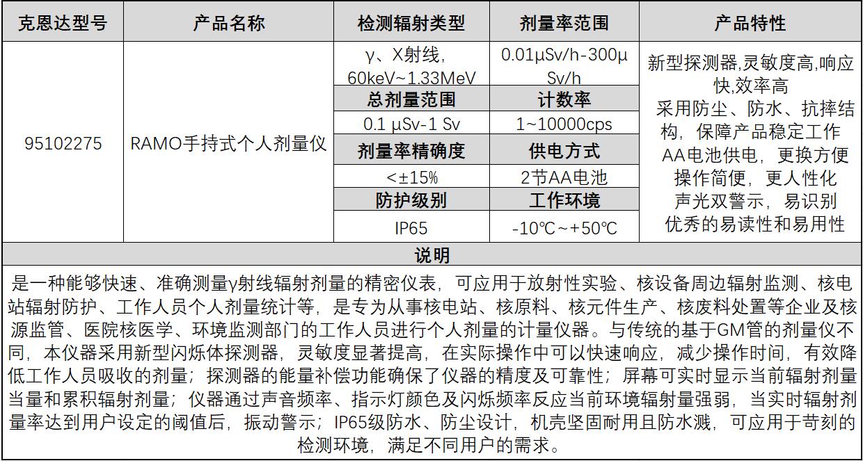 规格:  0.01~300μSv/h 制造商型号:  KT95-102-275