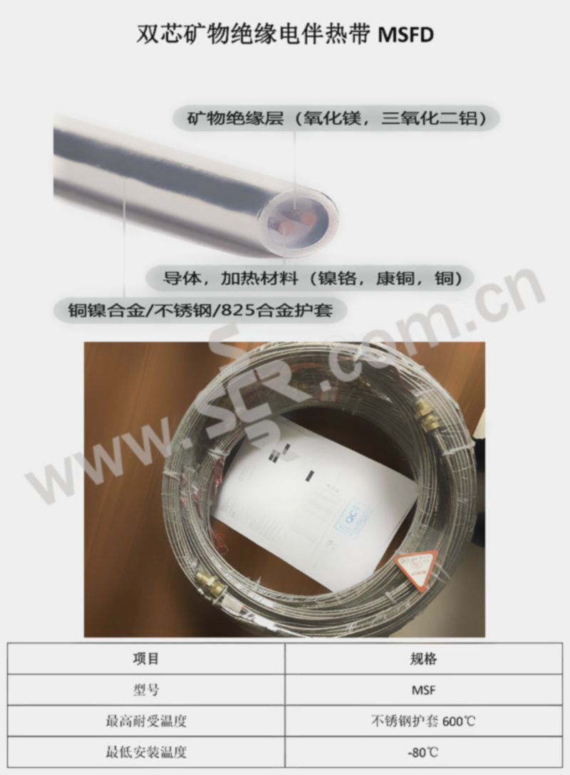 PROTRACE 双芯矿物绝缘伴热电伴热带 MSFD-定制 1米