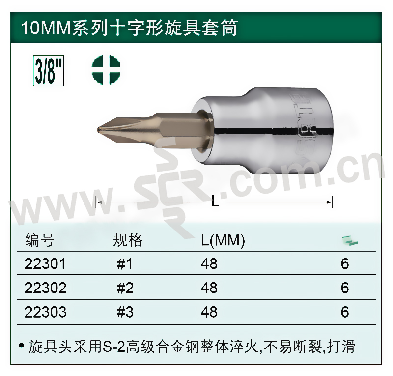 ·旋具头采用S2高级合金钢整体淬火,不易断裂、打滑。