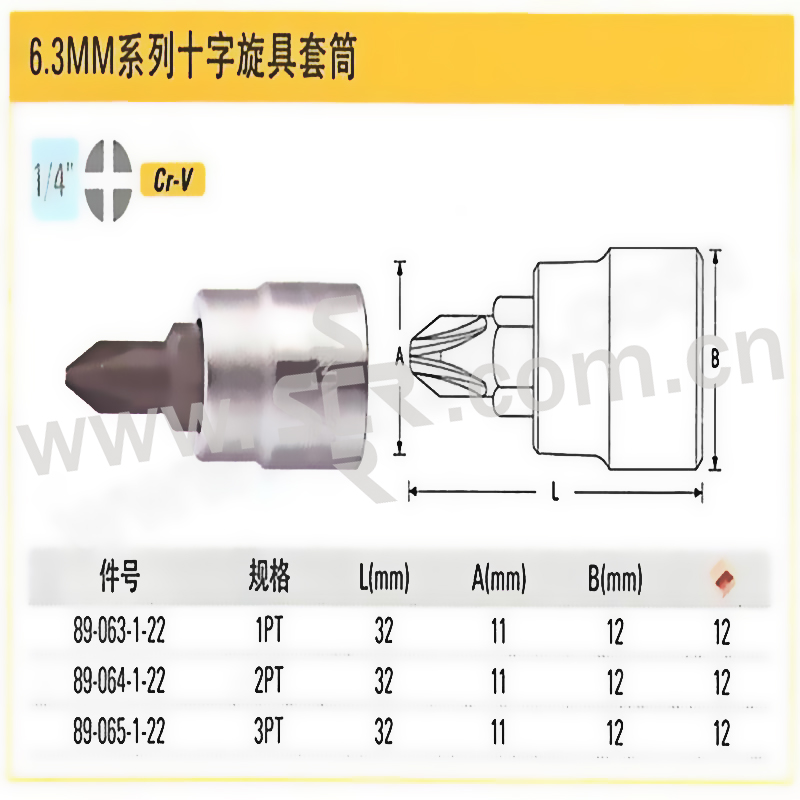 STANLEY/史丹利 6.3mm系列十字旋具套筒 89-063-1-22 1/4" 1个