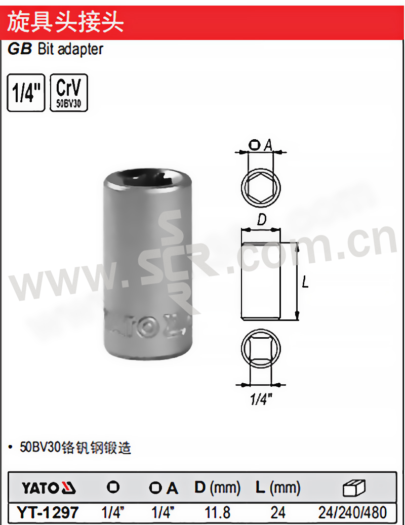 YATO/易尔拓 旋具头接头 YT-1297 1/4"×HEX6.35mm 1个
