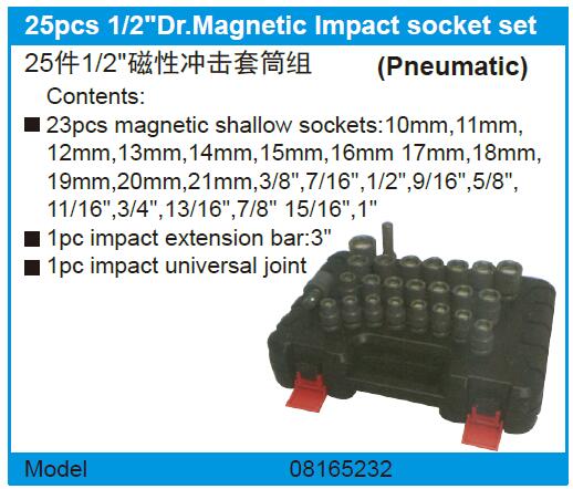 英文名称:  25pcs 1/2"Dr.Magnetic Impact socket set