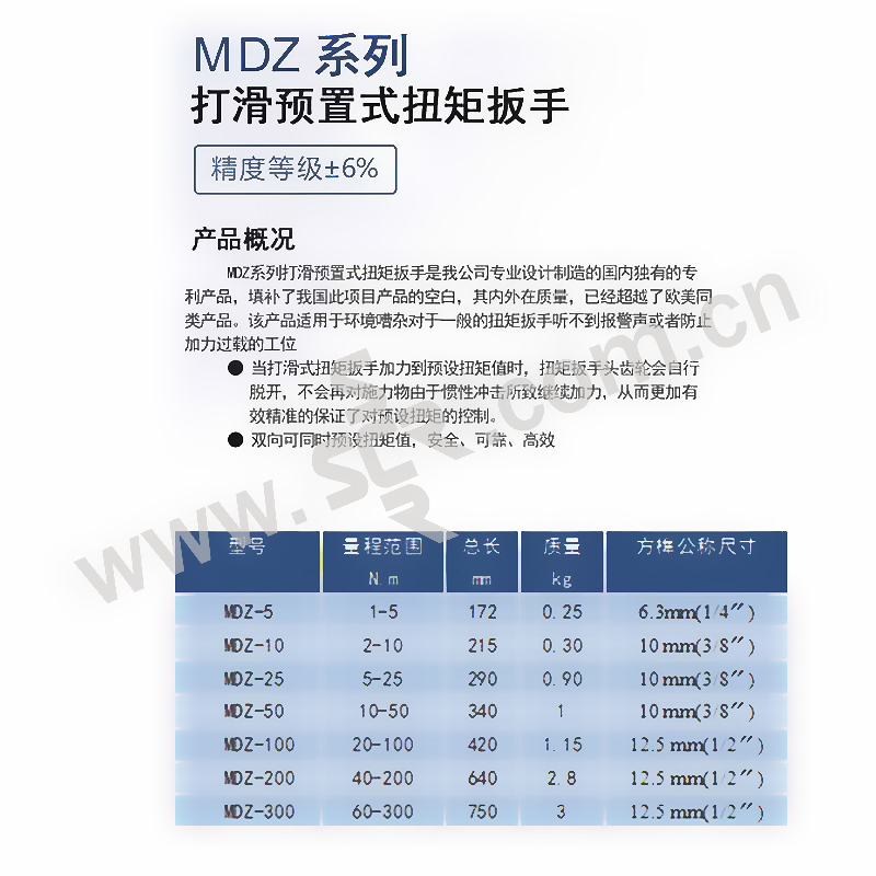 TYD/天煜达 MDZ系列打滑预置式扭力扳手 MDZ-5 500g 1把