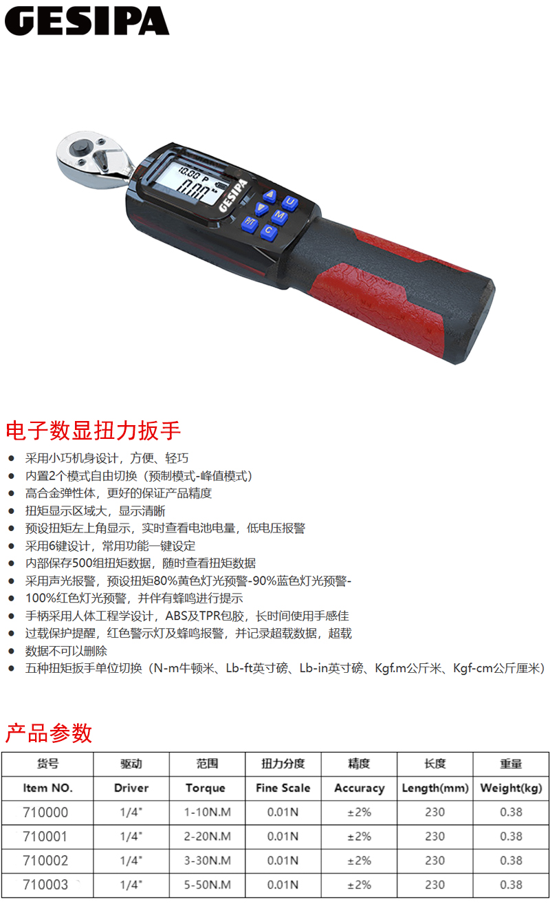 ·五种扭矩扳手单位切换 (N-m牛顿米、Lb-ft英尺磅、Lb-in英寸磅、kgf.m 公斤米、kgf-cm公斤厘米)