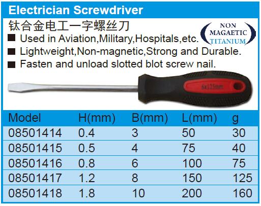 钛合金电工一字螺丝刀 08501415 0.5mm 1把