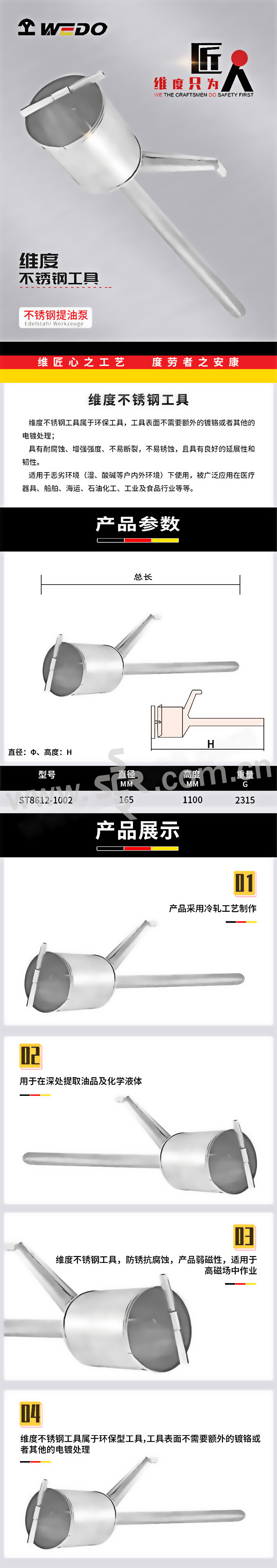 WEDO/维度 304不锈钢提油泵 ST0304-8612-1002 φ165×1100mm 1把