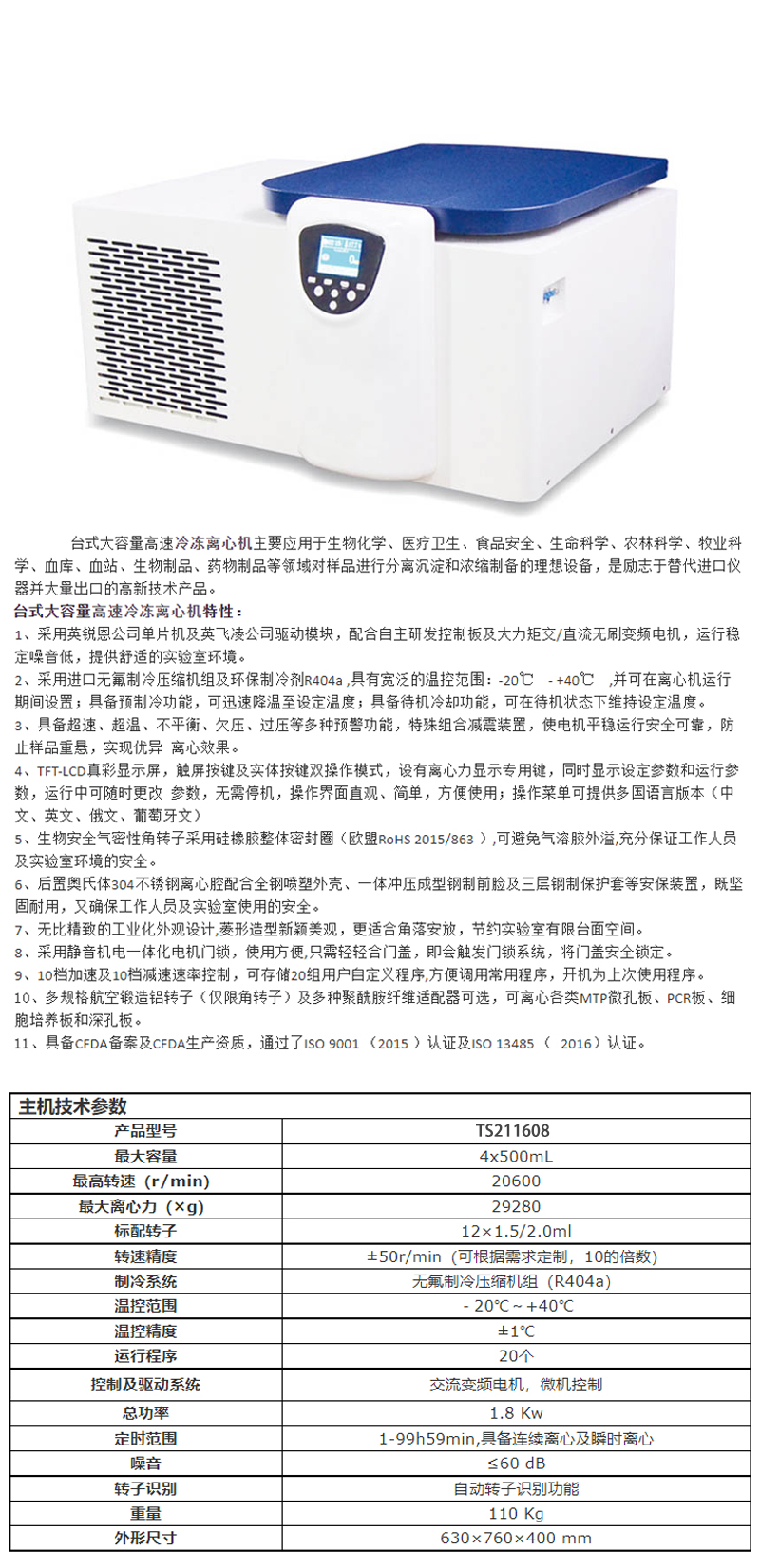 ·大屏幕高清真彩TFT触摸屏控制,操作简便、显示直观,设置参数与实时运行参数可同屏显示 ·超大容量数据储存与故障记录等信息,方便追踪运行历史数据信息,同时可导出相关数据并进行打印 ·强大的控制系统,可实现分段阶梯离心、预设程序调用、分级密码管控,确保使用仪器安全可靠,便于精细化管理