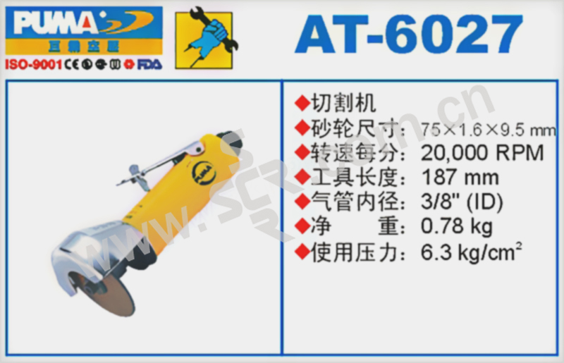 PUMA/巨霸 气动直柄切割机 AT-6027 75mm 20000RPM 1把