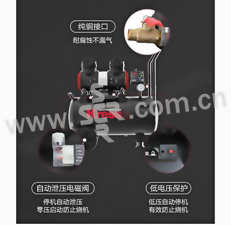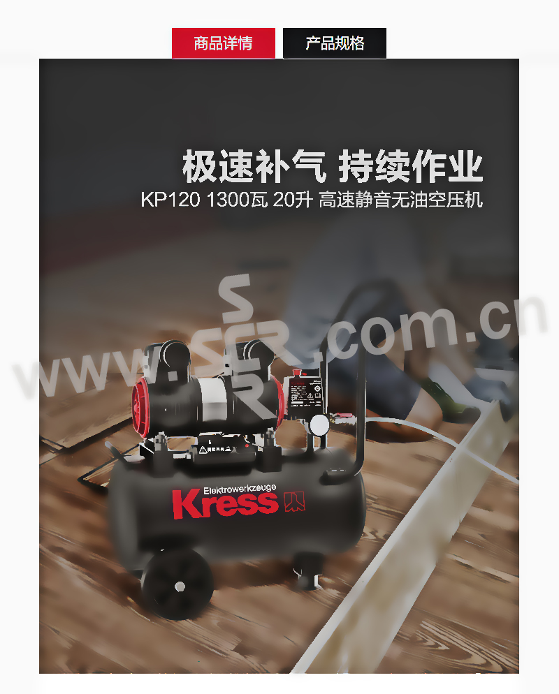 KRESS/卡胜 空压机 KP120 1.3kW 20L 无油 1台