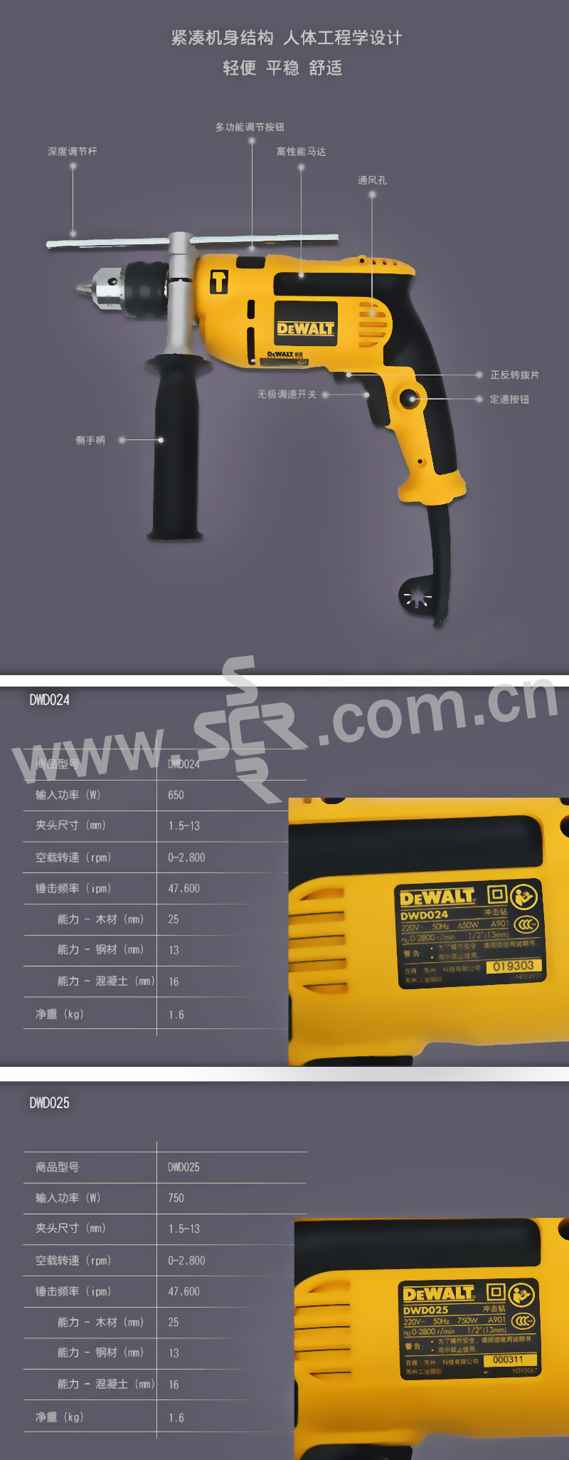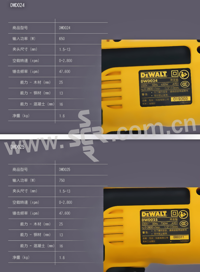 DEWALT/得伟 13mm 650W 冲击钻 DWD024 调速13mm650W 1台