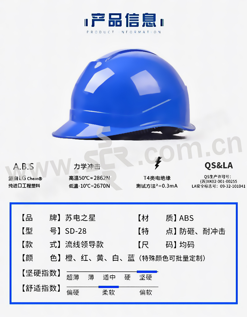 SDZX/苏电之星 ABS一字型安全帽 SD-28 红色 一锁键帽衬 PVC吸汗带 Y型下颌带 1个