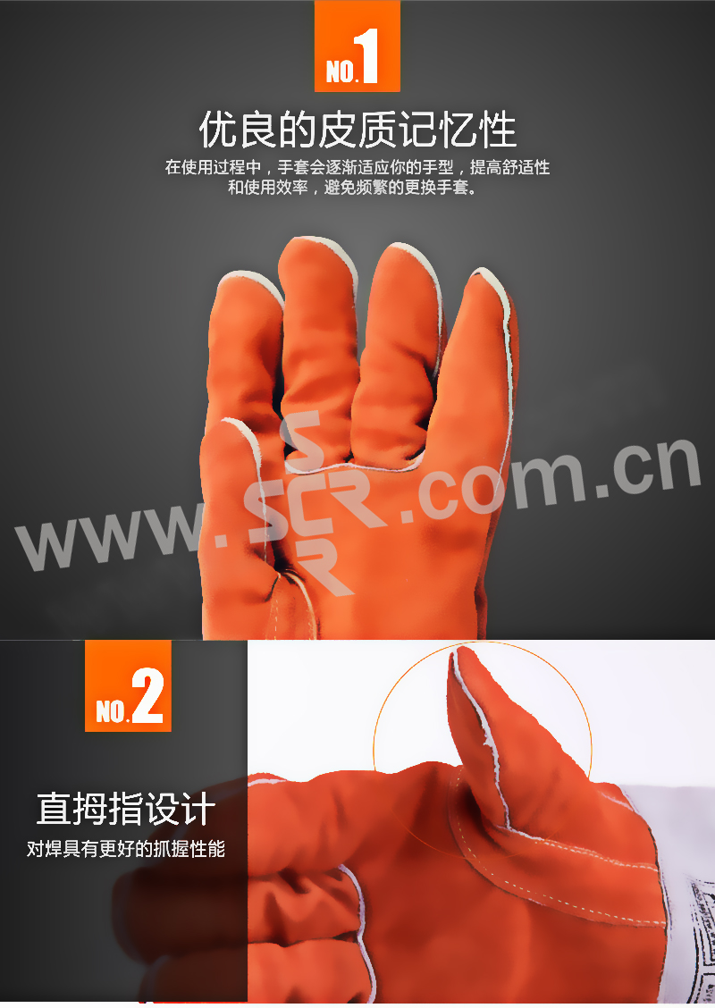 WESTUN/威仕盾 橙红色直指焊接手套 G-0392 均码 35cm 1副