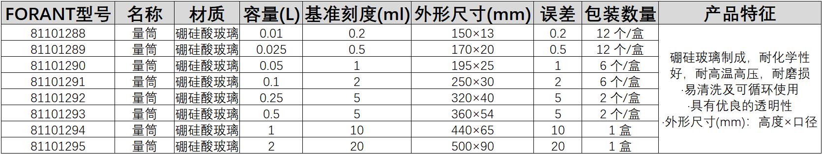 ·硼硅玻璃制成,耐化学性好,耐高温高压,耐磨损 ·易清洗及可循环使用 ·具有优良的透明性 ·外形尺寸(mm):高度×口径